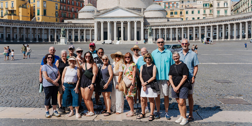 After breakfast at the hotel, the group departs Rome by private bus, accompanied by the tour leader and driver, heading south toward the vibrant city of Naples. Upon arrival, participants enjoy a guided walking tour through the historic center, discovering landmarks such as Piazza del Plebiscito, the Royal Palace and the San Carlo Theatre. The walk continues along Spaccanapoli, the lively artery of the old town, with an external visit to Naples Cathedral.