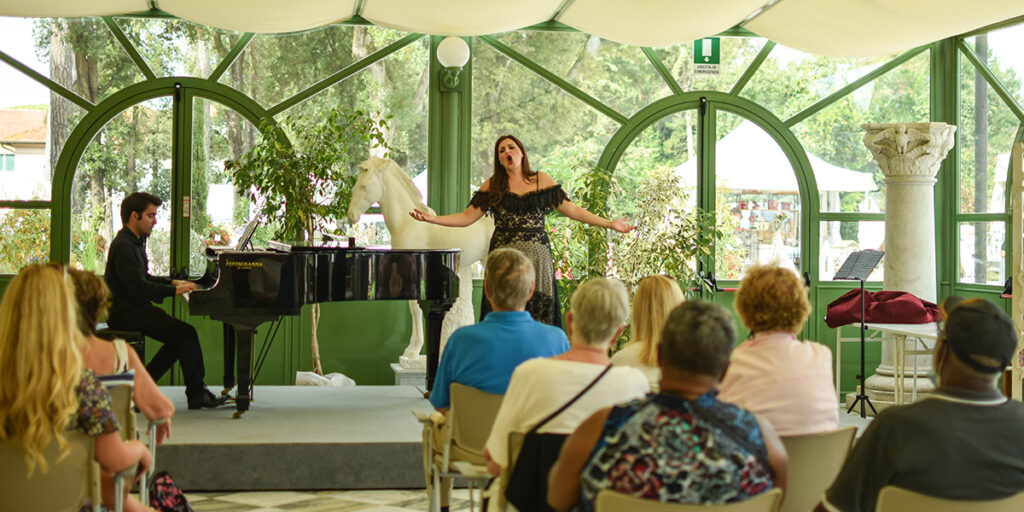 The tour continues to Villa Bertelli, where participants attend an exclusive concert featuring a pianist and a pop-lyric singer performing iconic Italian compositions in an elegant villa setting (1-hour concert).