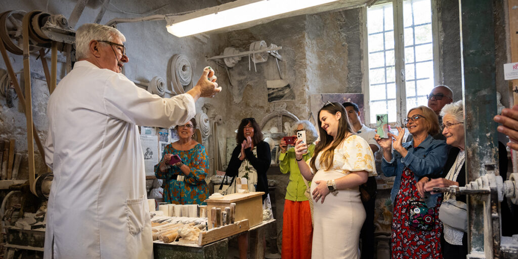 Following the museum visit, participants take part in a wine tasting of Bocelli wines, learning about the family’s winemaking traditions. The tasting is followed by a four-course Tuscan lunch, carefully paired with wines from the family estate (Total duration of vineyard visit, museum, wine tasting and lunch: approximately 3 hours).